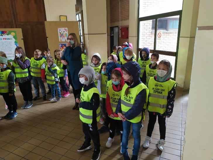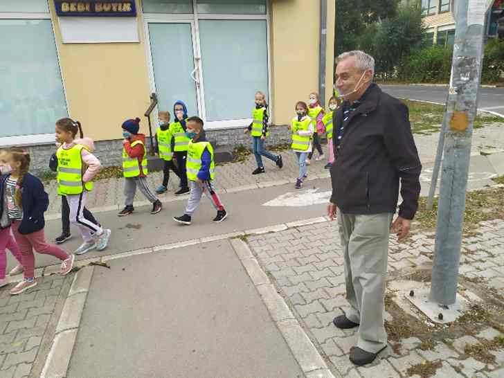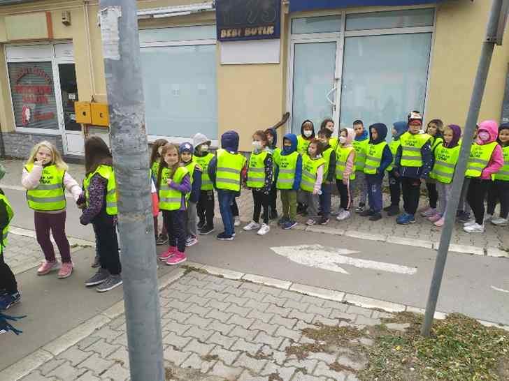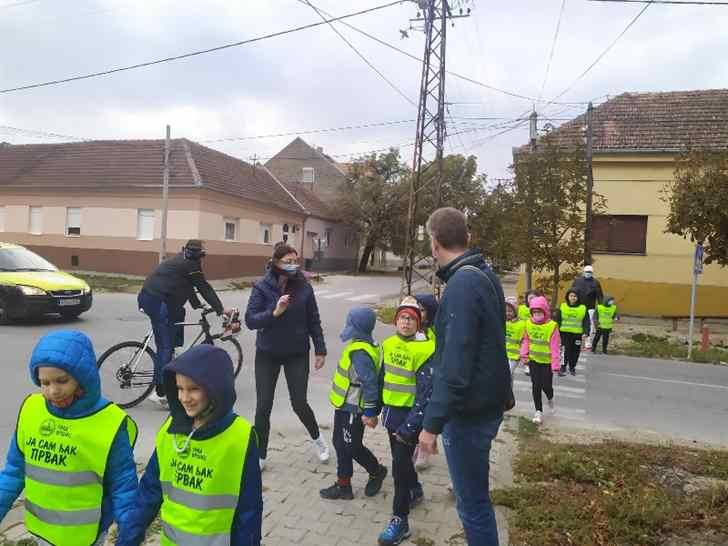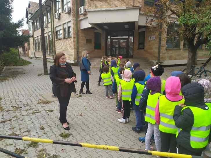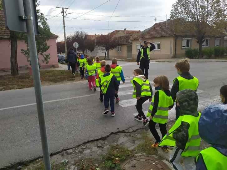 Краћом шетњом ученици су демонстрирали усвојена правила преласка преко раскрснице, са и без светлосне сигнализације.