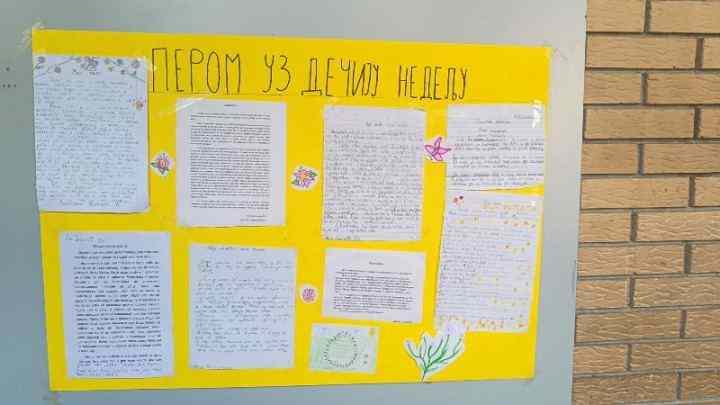 Виши разреди (5. и 6.) су поводом Дечије недеље имали активност под називом – Пером уз Дечију недељу и писали су писмене саставе на тему: „Машта може свашта“. Најлепши радови су похваљени, а од најбољих ученичких радова направљен је пано. Такође ученици су у току дечије недеље у хемијско-медицинској школи били и на презентацији „Штетно дејство енергетских пића“. Касније су сумирали своја запажања и израдили пано на тему коју су одслушали.